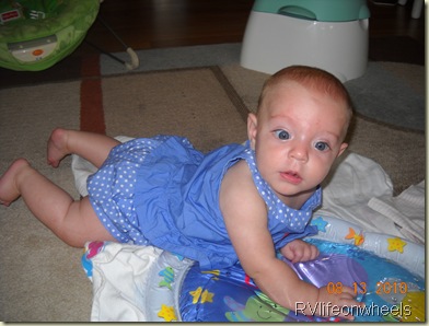 Jenn worked on changing the water this afternoon in the kid’s swimming pool, here is Emmie trying it out after we had finished… she said the quality control was excellent!